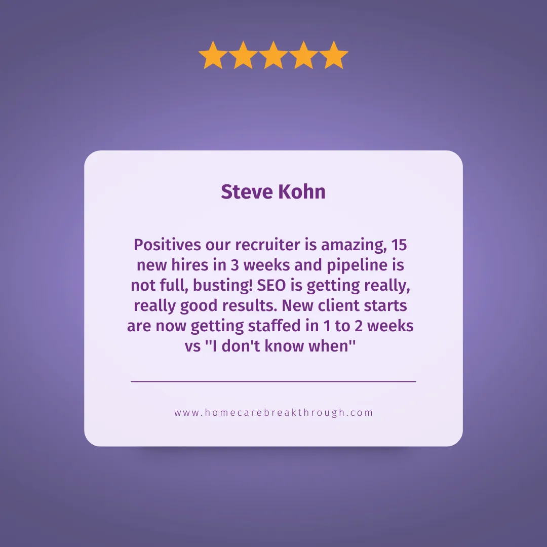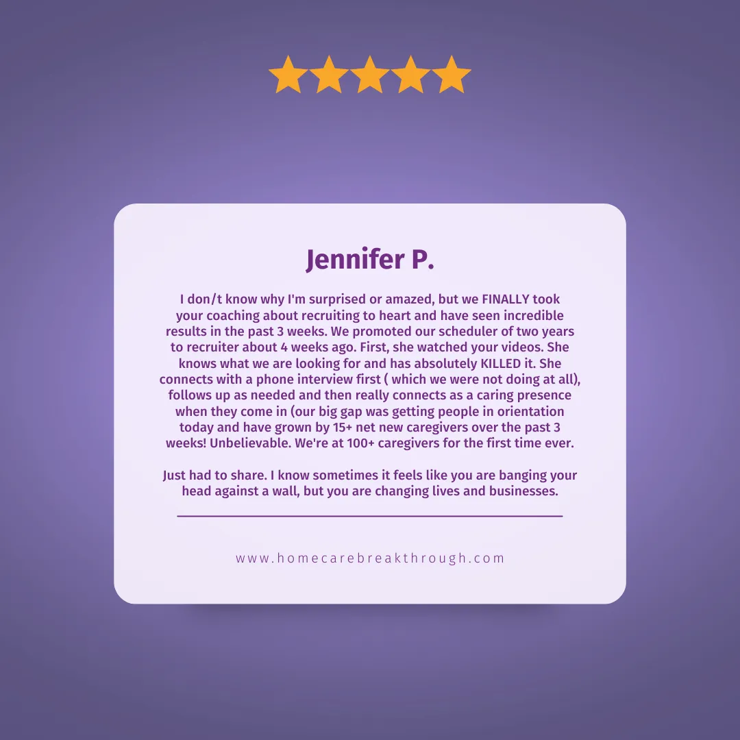 Yet, no matter what I did……I was struggling with finding consistent clients and continuing to grow my business. Dealing with my caregivers and "on call" was a nightmare…to a point where I thought about selling the business.