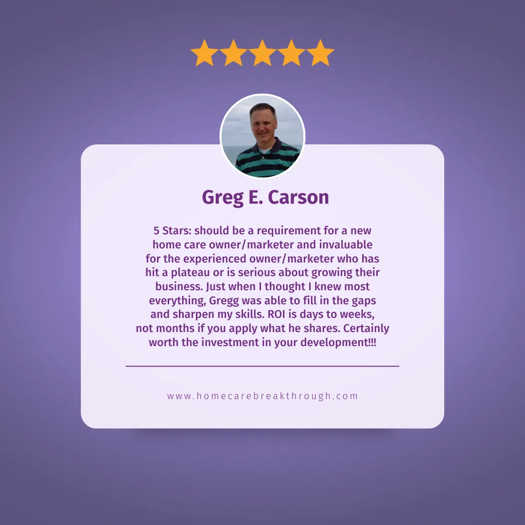 And if you follow what’s taught inside of this VAULT…it can transform your business as it has for thousands of other home care owners that have been to my events, done my trainings, or that I’ve coached and consulted with along the way